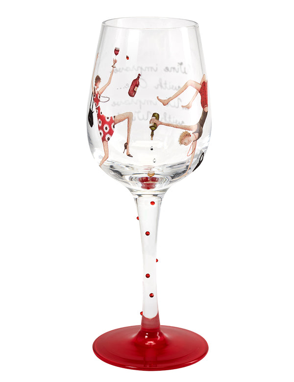 Berni live and works in her home studio in rural Worcestershire. She has a uniquely recognisable soft textured art style derived from using handmade paper and coloured pencils. Her inspiration comes from spending time with family/friends and sharing a glass of wine (or three). From her observation of people ‘loving life’ she noticed they love wine too so she has licensed her subtly humoured designs to create these beautiful glasses which she hopes will help you love life (and wine) a little more!